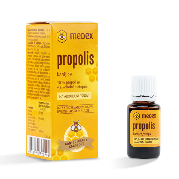 Medex propolis kapi prirodno je sredstvo za oralnu higijenu i njegu sluznice usne šupljine. Pomaže kod upale grla i ždrijela, suzbijanja neželjenih mikroorganizama te kod lošeg zadaha.