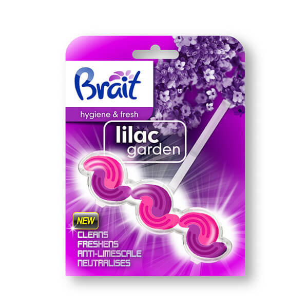 Brait WC osvježivač idealan je za svakodnevno održavanje čistoće i svježine toaleta. Zahvaljujući posebno dizajniranom držaču, aktivne tvari se ravnomjerno oslobađaju pri svakom ispiranju, čime se efikasno uklanjaju nečistoće i sprječava stvaranje kamenca. Njegova napredna HYGIENE & FRESH formula pruža kombinaciju čišćenja, zaštite i dugotrajnog osvježenja, dok nježan miris jorgovana ostavlja prijatan i svjež osjećaj u kupatilu.