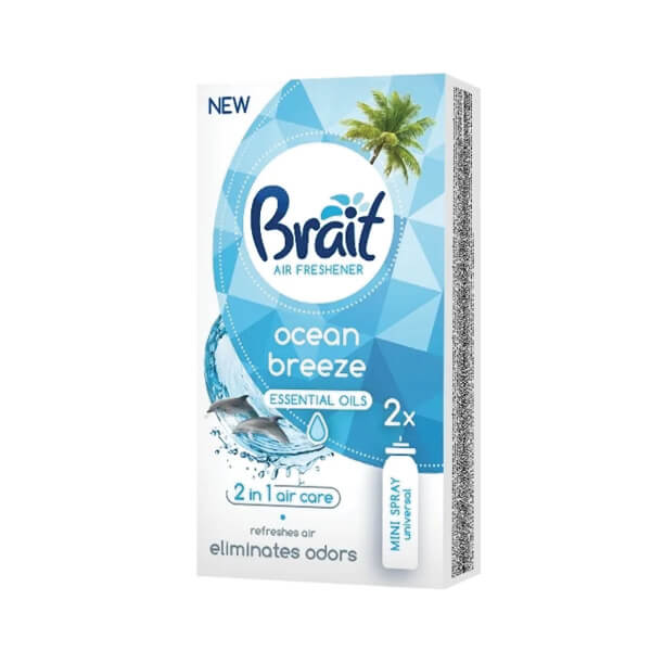 Brait Ocean Breeze je svjež miris koji vraća uspomene na ljetne odmore, zvuk oceana i morski povjetarac. Neka se miris ljeta trajno nastani u vašem domu. Zamjensko punjenje za mini raspršivač, koncentrirani aerosolni osvježivač zraka. Sadrži modernu 2u1 Air Care formulu, zahvaljujući kojoj učinkovito neutralizira i upija čestice neugodnih mirisa umjesto da ih maskira.