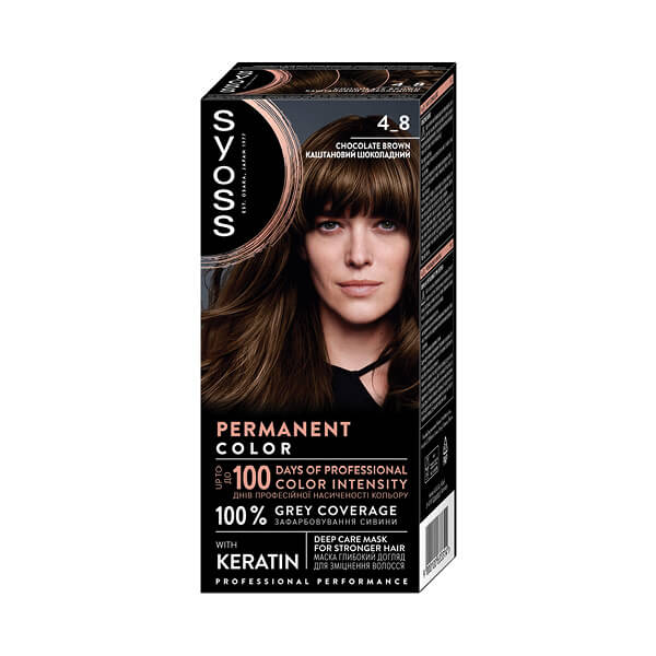 Syoss formula visokih performansi snabdijeva vlas pigmentima boje koji ostaju zatvoreni duboko u jezgru dlake, što kosi daje intenzivan i ujednačen rezultat bojenja te čini kosu sjajnom – profesionalno prekriva sijede vlasi.
