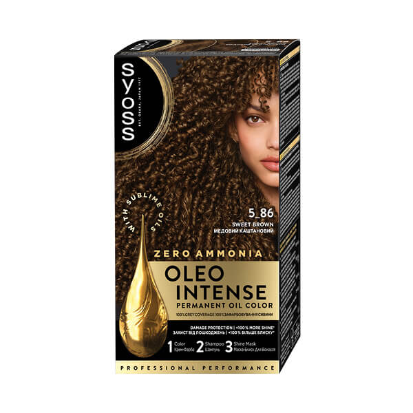 Syoss Oleo Intense pruža vrhunski intenzitet i dugotrajnost boje uz profesionalno prekrivanje sijedih vlasi te daje kosi do 90% više sjaja.