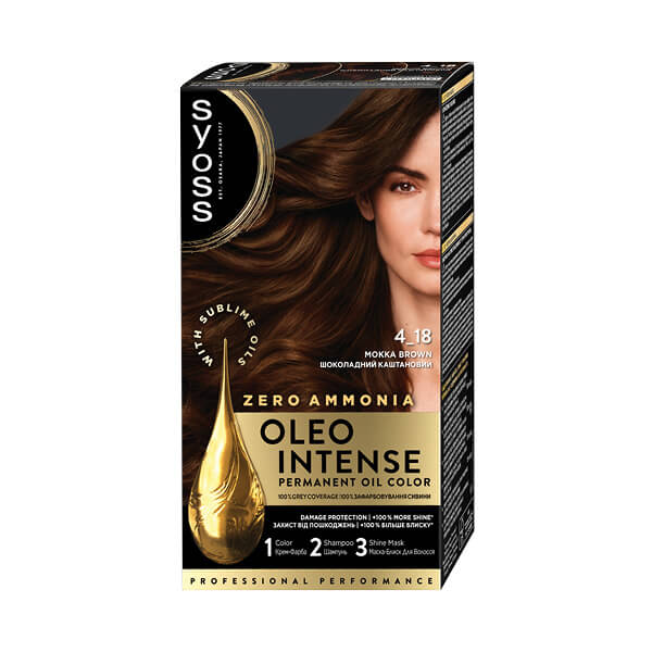 Syoss Oleo Intense pruža vrhunski intenzitet i dugotrajnost boje uz profesionalno prekrivanje sijedih vlasi te daje kosi do 90% više sjaja.