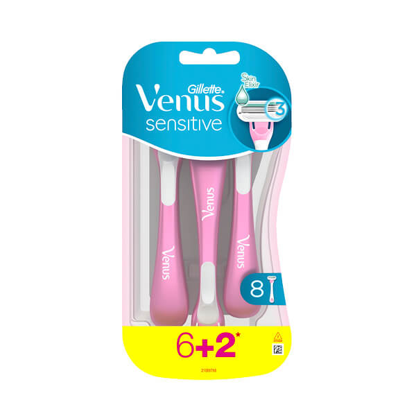 Gillette Venus Sensitive ženski brijač za jednokratnu upotrebu s 3 oštrice osigurava idealne rezultate brijanja. Hidratantna Moisture Rich trakica omogućava lagano klizanje po koži i tako sprječava povrede i iritacije. Drška udobno leži u ruci te osigurava precizno i sigurno rukovanje. Ekonomično pakovanje sadrži 8 brijača. Za osjećaj ugodnosti tokom brijanja i glatku kožu s manje iritacija, Gillette Venus Sensitive ženski brijač.