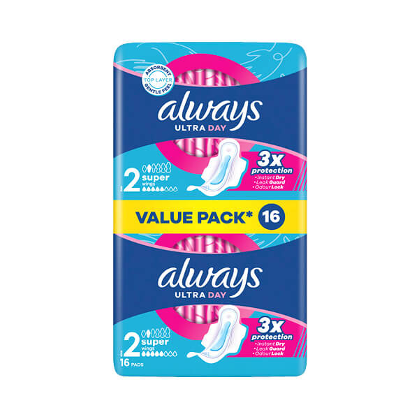 Higijenski ulošci Always Ultra Day Super (veličina 2) pružaju pouzdanu zaštitu i udobnost. Zahvaljujući InstantDry sistemu, tečnost se trenutno upija i zadržava daleko od kože, osiguravajući vam suhoću tokom cijelog dana. Moćna upijajuća jezgra i inovativna bočna zaštita SecureGuard, zajedno s krilcima, drže uložak čvrsto na mjestu i pružaju dodatni osjećaj sigurnosti. Tehnologija za neutralizaciju neugodnih mirisa garantuje svježinu, dok debljina od samo 3 mm nudi maksimalnu diskreciju. Osjećajte se zaštićeno i samouvjereno bez obzira na obaveze uz Always Ultra Day Super (veličina 2) higijenske uloške.
