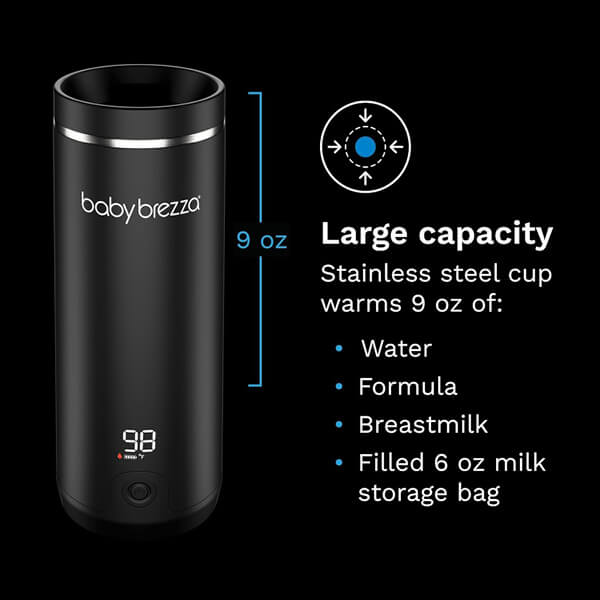 BabyBrezza Prijenosni grijač BRZ0179 praktično i jednostavno za korištenje. Nema adaptera, prevrnutih boca ili prolijevanja – za razliku od drugih prijenosnih grijača. Jednostavno dodajte tekućinu i odaberite željenu temperaturu. Kada je zagrijavanje završeno, grijač se oglašava zvučnim signalom i automatski isključuje. Zatim ulijte tekućinu pomoću izljeva za izlijevanje od 360° ili odvrtanjem poklopca.