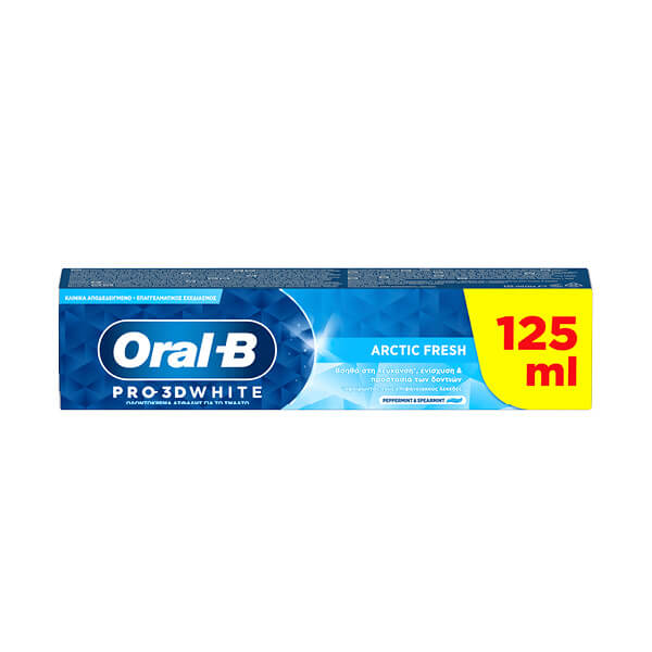 Za osmijeh kao s reklame, odaberite Oral-B PRO 3DWHITE ARTIC FRESH pastu za zube, koja je znanstveno potvrđena u borbi protiv mrlja. Uživajte u vidljivom izbjeljivanju već nakon prve upotrebe, dok redovna upotreba vraća vašim zubima njihovu prirodnu bjelinu i sjaj. Osjetite kako Oral-B PRO 3DWHITE ARTIC FRESH transformira vašu svakodnevnu oralnu higijenu i daje vam zdrav, blistav osmijeh.