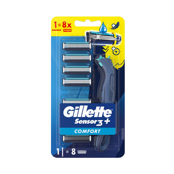 Gillette Sensor 3+ Comfort brijač pruža ugodno iskustvo brijanja. Set uključuje jedan brijač i osam rezervnih oštrica s tri fleksibilne oštrice koje se prilagođavaju konturama lica, omogućavajući precizno brijanje. Hidratantna traka smanjuje iritaciju, dok ergonomski dizajn drške osigurava lakoću korištenja. Idealno za svakodnevnu njegu i besprijekorno brijanje.