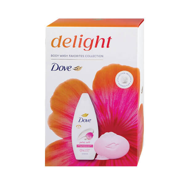 Dove Delight pink ženski set (shower gel + sapun + mreža za tuš)