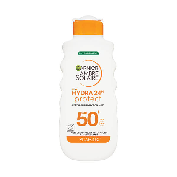 GARNIER AMBRE SOLAIRE HYDRA 24H losion za zaštitu od sunca, SPF 50 pored toga što će štititi Vašu kožu od štetnosti sunčevih zraka istovremeno će je i hraniti i sprečavati isušivanje. Hidrirajuća formula ostavlja kožu nježnom i mekanom. Obogaćeno shea puterom. GARNIER HYDRA 24H losion za zaštitu od sunca, SPF 50 - dajte svojoj koži pravu zaštitu i hidrataciju!